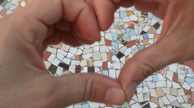 Mosaic Hearts June 11, 2013 by Carrie Tichenor Mosaics in Group Effort Mosaic, Heath Ceramics Mosaic Workshop, Travel Mosaic and tagged #heathceramics, #Mosaic | Leave a comment